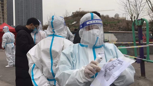 昕语说,到了一线好像随处可以听见那句无声又坚定的“众志成城”!记者问他冷不冷,累不累?“只是一直站着,市民们都很配合工作,工作很顺畅。最累的还是做核酸检测的医务工作者们。”下午四点半,排队的人少了些,昕语和其他志愿者们轮换着把晚饭吃了。“但他们一刻都没停下,顾不上喝口水,吃口饭。”
